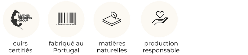 Chaque modèle est réalisé à la main dans notre atelier situé au Portugal à côté de Braga. Nos modèles sont soigneusement emballées dans un pochon en coton recyclé accompagnés d'un mini baume d'entretien pour le cuir.